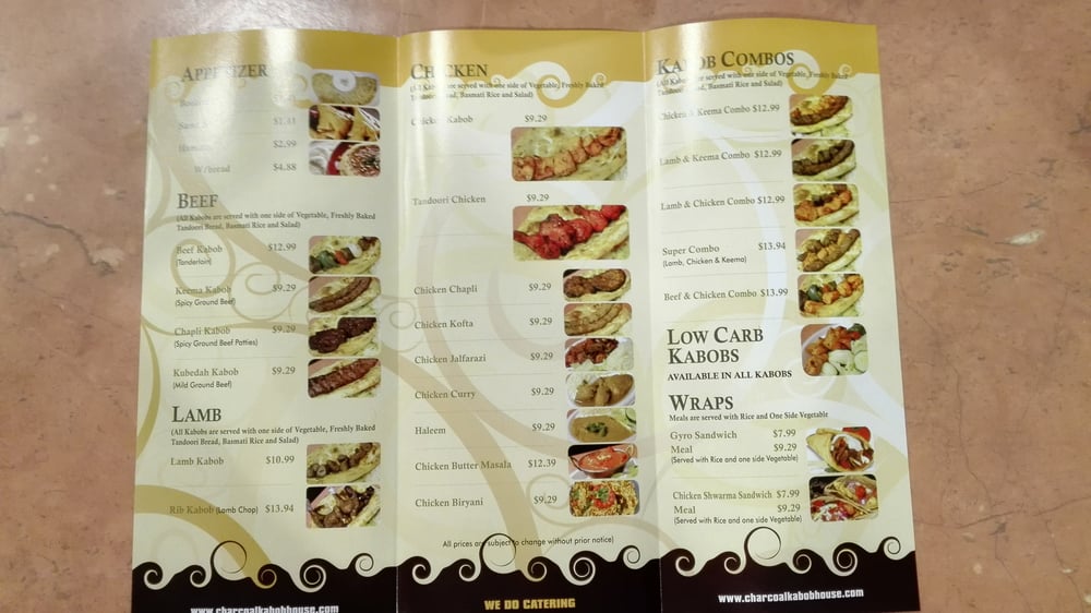 Introducing the menu at Charcoal Kabob, a casual yet classy restaurant in Herndon, VA, offering a variety of delicious options. From flavorful appetizers like Boolanee and Sambosa to mouth-watering wraps and gyros, such as the Gyro Wrap and Chicken Wrap meals, every dish is sure to satisfy your taste buds. With options for vegan customers and a range of beverages like Mango Lassi and Bottled Dough Yogurt drink, there is something for everyone to enjoy. Customers rave about the fresh ingredients, friendly staff, and exceptional service provided by Charcoal Kabob. Don't miss out on the chance to experience the consistently delicious flavors and welcoming atmosphere at this hidden gem that has been a favorite for over 25 years.